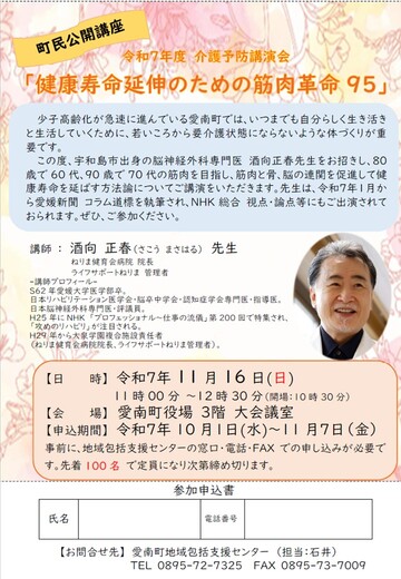 講師に「ねりま健育会病院院長の酒向 正春(さこう まさはる)先生」をお迎えして、令和7年度 介護予防講演会「健康寿命延伸のための筋肉革命95」を開催します。